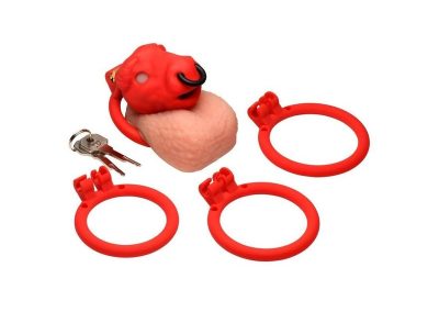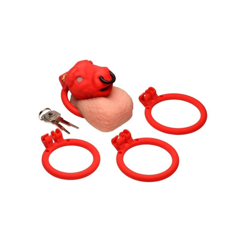 Dominate the moment, and your eager rod, with the Bull Chastity Cage. This unique chastity device features a bull head that caps the tip of the shaft, securing it in place. Enjoy a perfect fit with 4 graduated rings designed to accommodate different sizes of shaft and balls. Made from body-safe, phthalate-free plastic, this cage guarantees safe use. The bull’s open mouth and eye holes act as a cum-thru tip and offer minor breathability for added comfort. Complete with a secure locking mechanism and 2 keys, you can decide when your partner deserves to be released. Master the art of restraint.